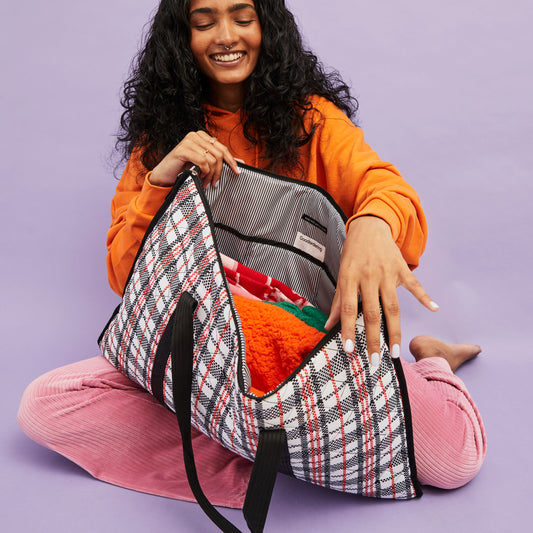 Eco Tartan “Billow” bag pillow pannier checkered plaid laundry portfolio bag