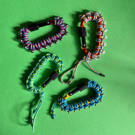 Paracord wrapped carabiner green spikes