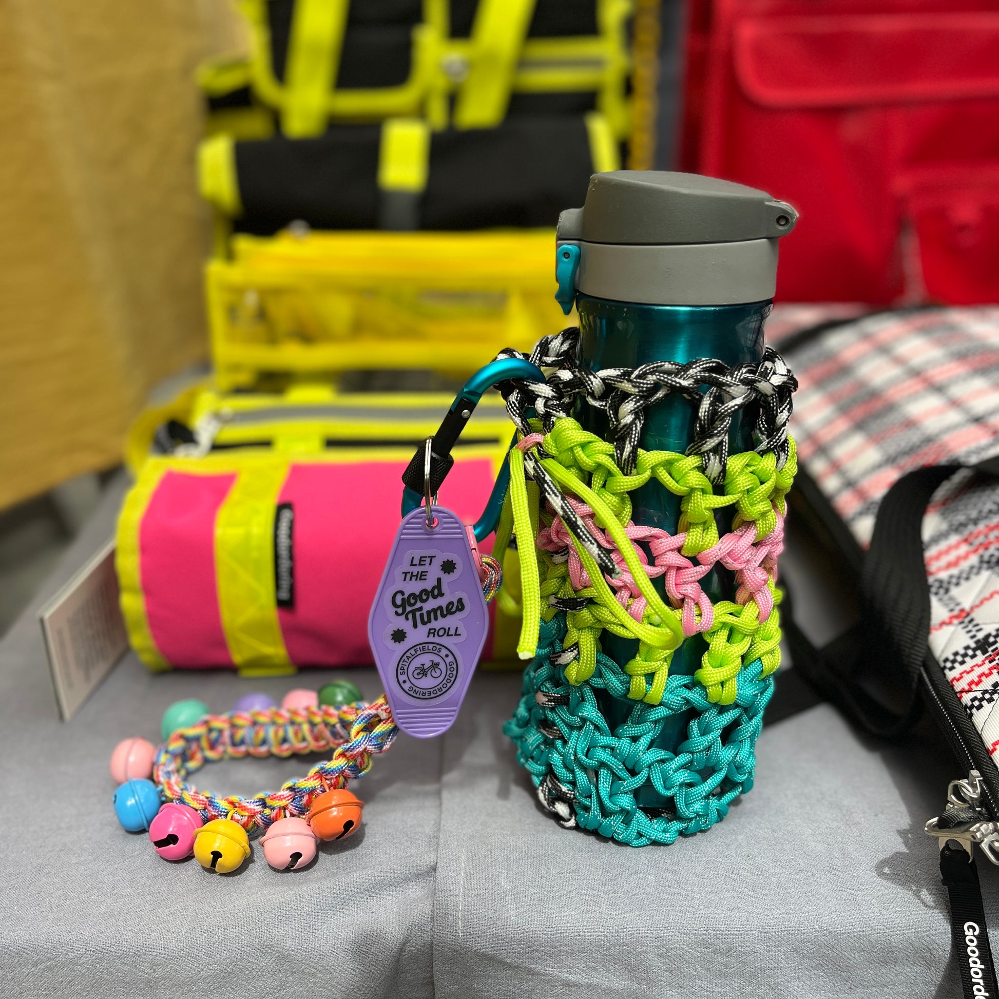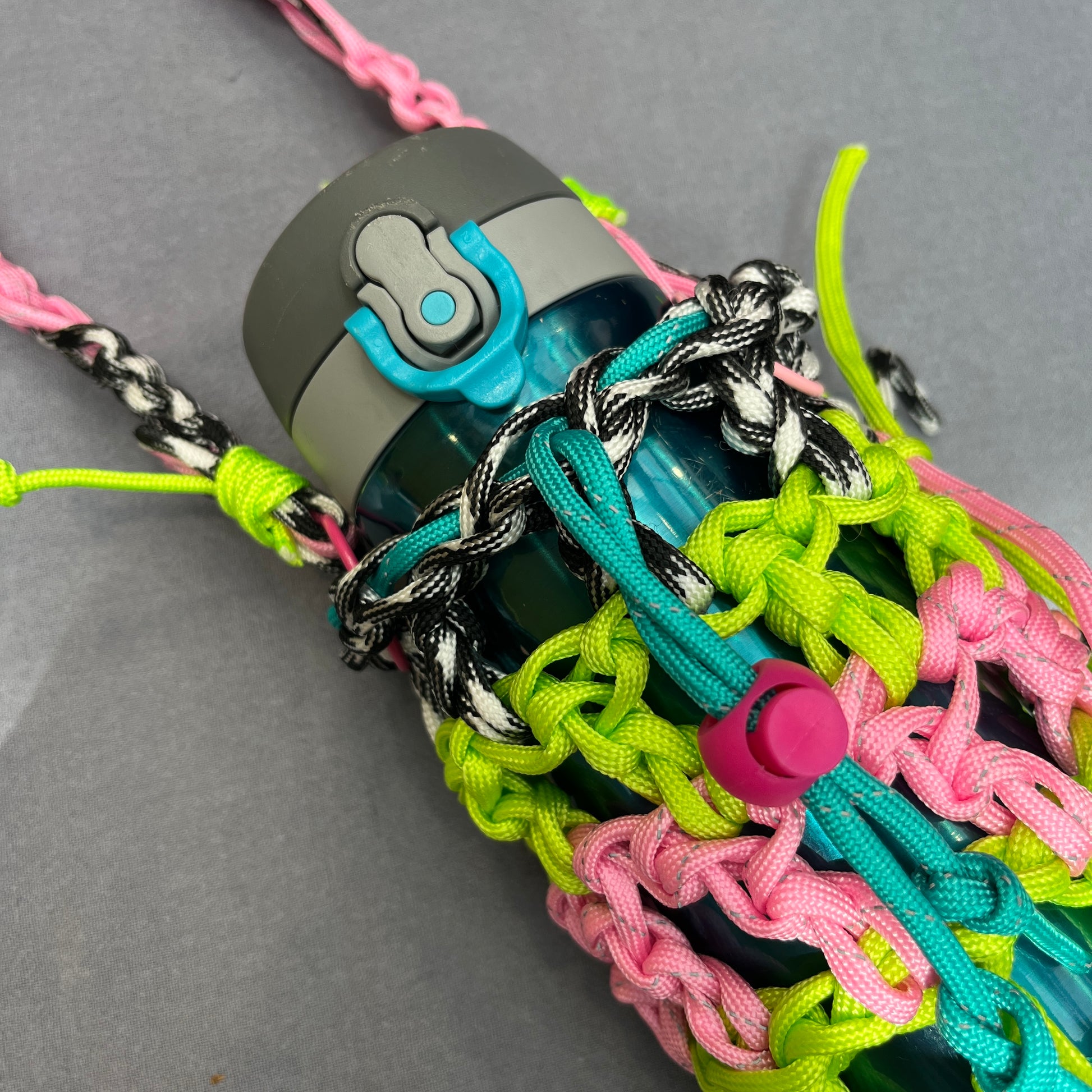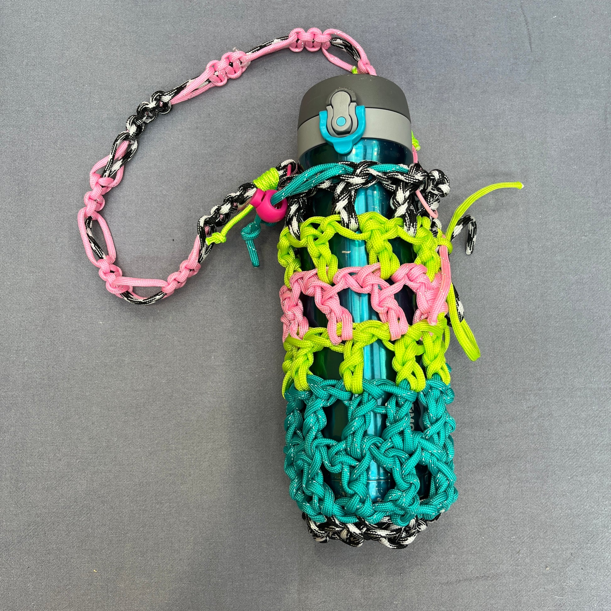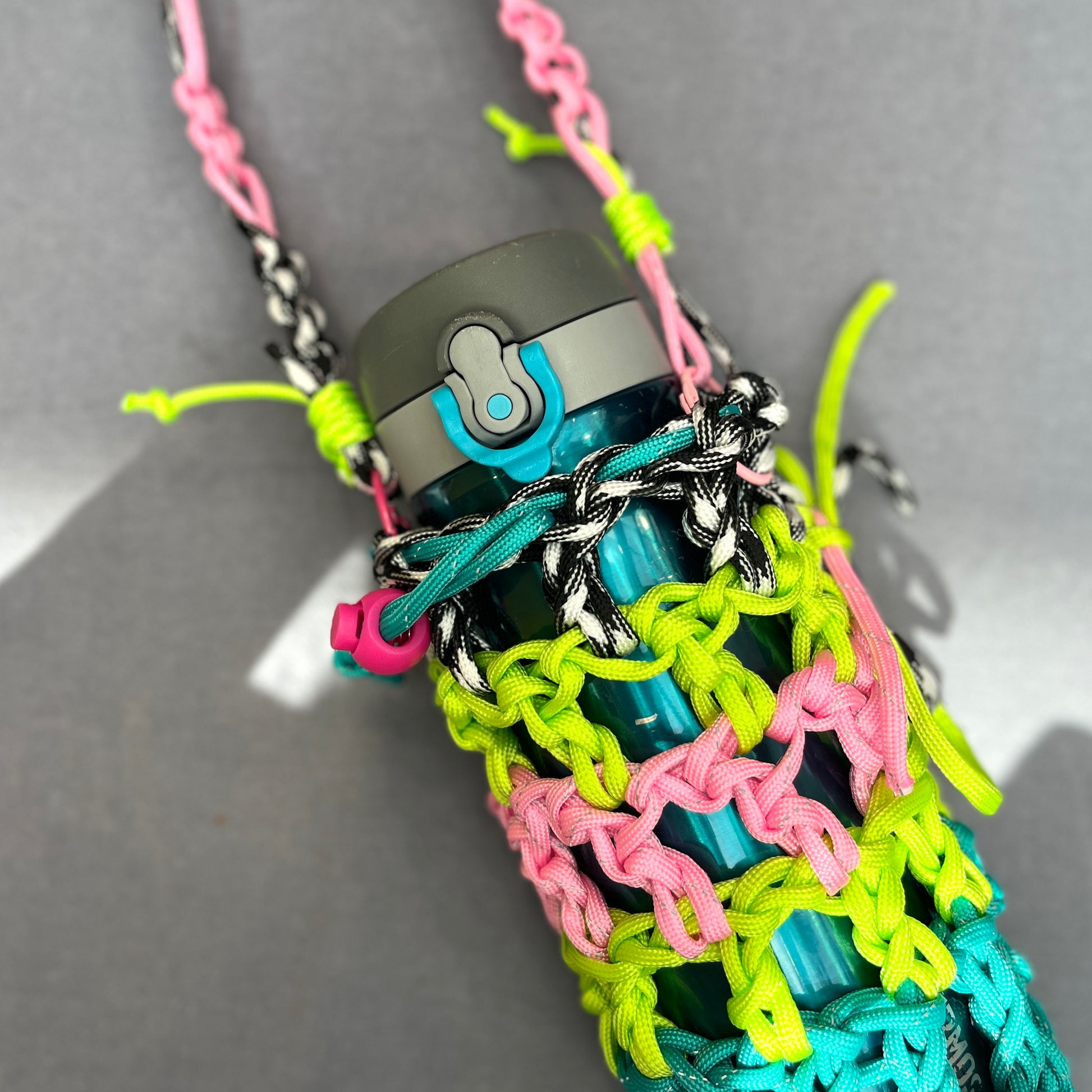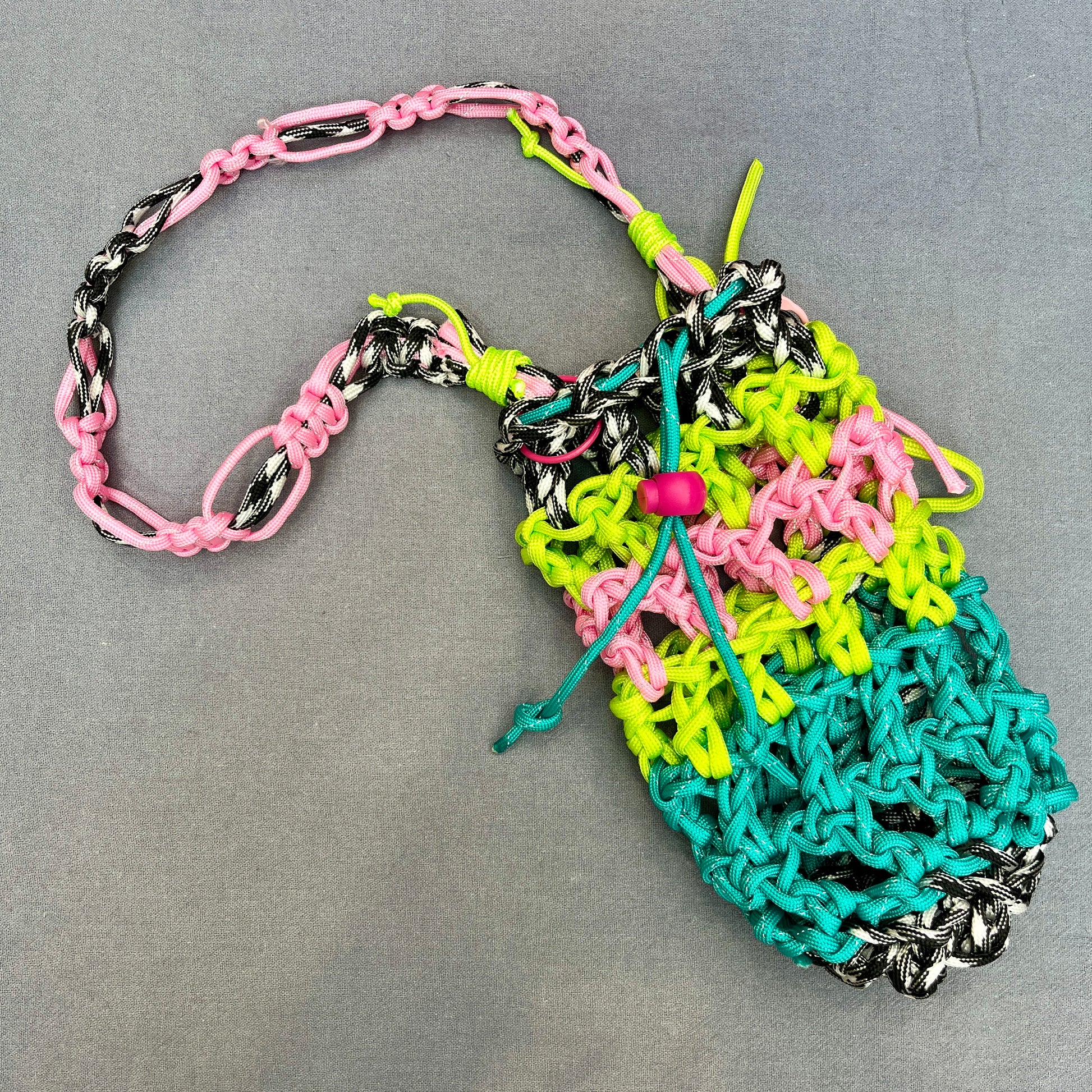 Hand crocheted shoulder bag, or bottle bag with beads made from 4mm and 5mm diameter nylon para cord, great for festivals