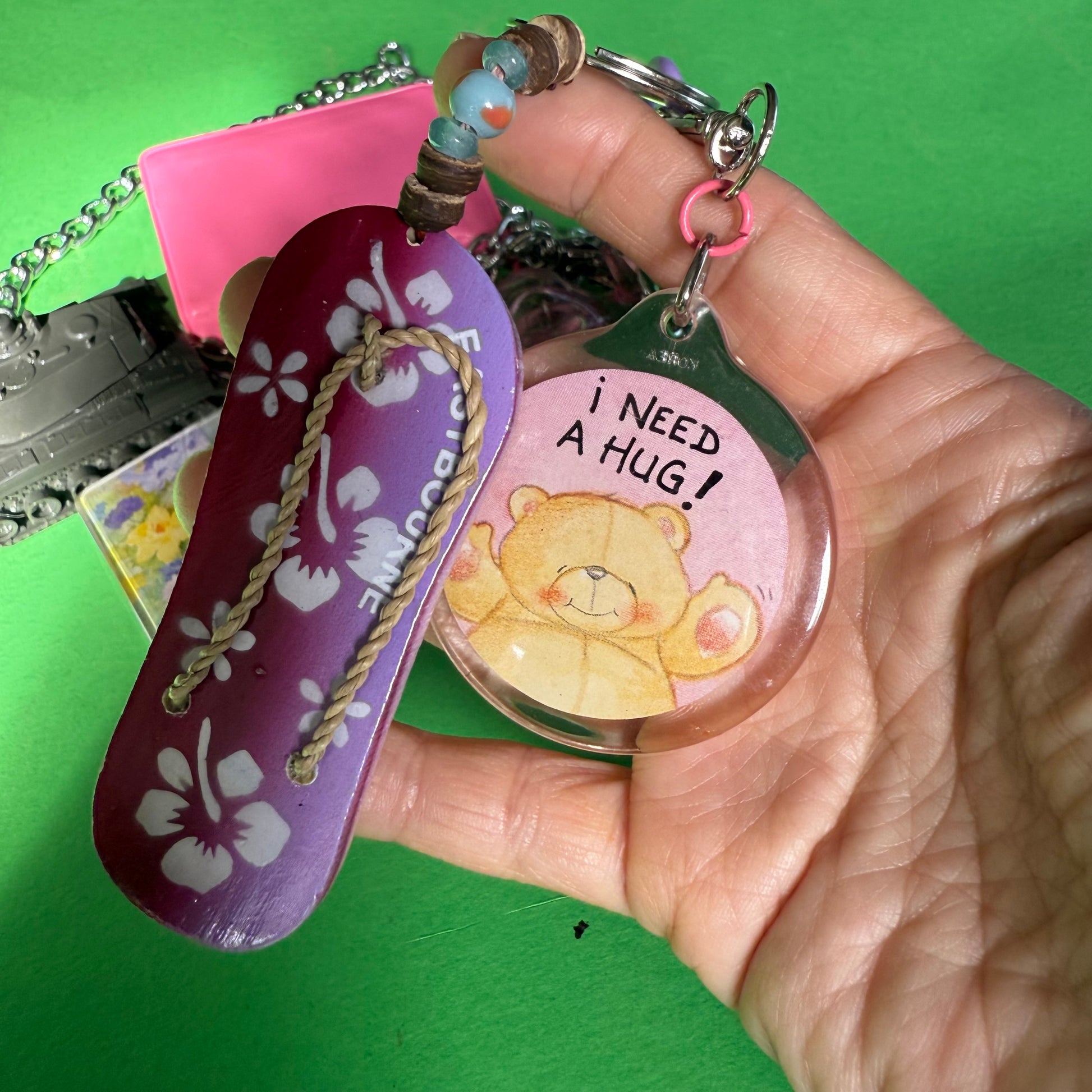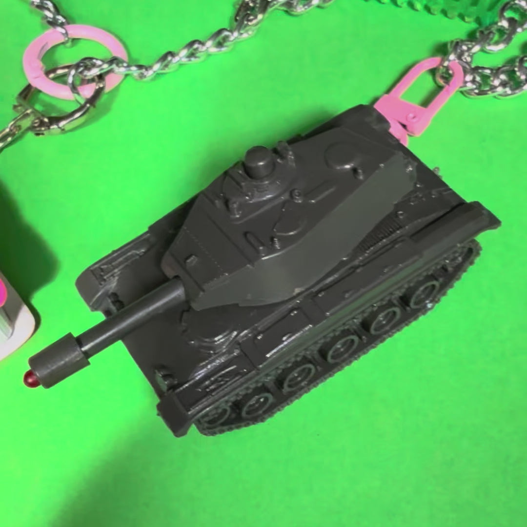 Handmade in east london. Designed and made by Jacqui Ma. Detachable charms so you can always be be prepared. The perfect gift for your maximalist friend or a well deserved gift for yourself (and me) with a satisfying jingling sound and all upcycled materials.