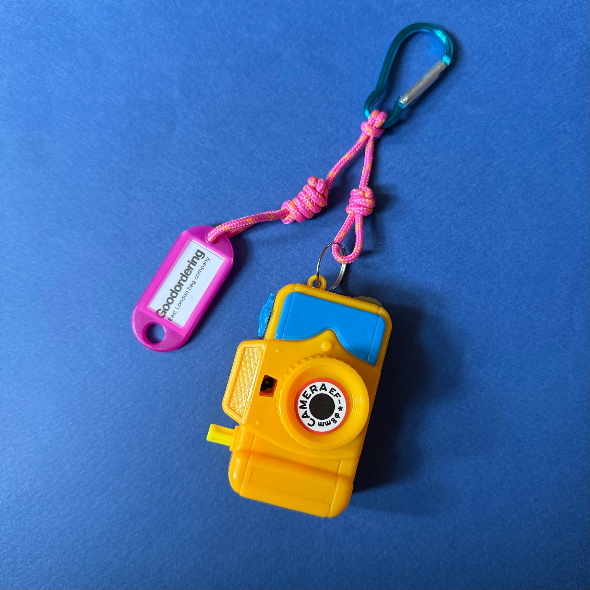 This is a small camera charm with keyring attachment. View finder so you can see little images when you look through the view window. Can be used alone or combined to make a bar charm bunch.