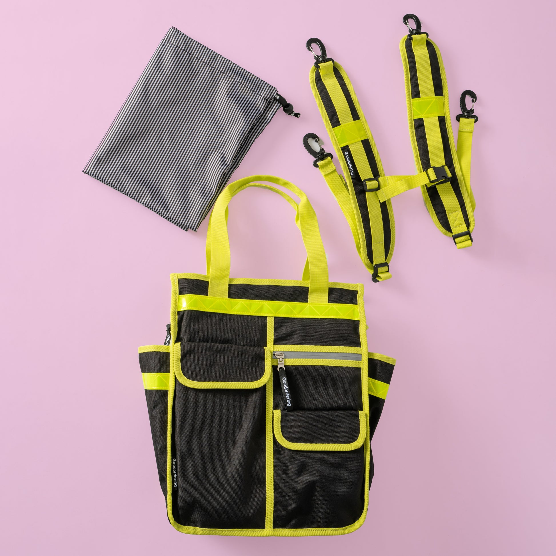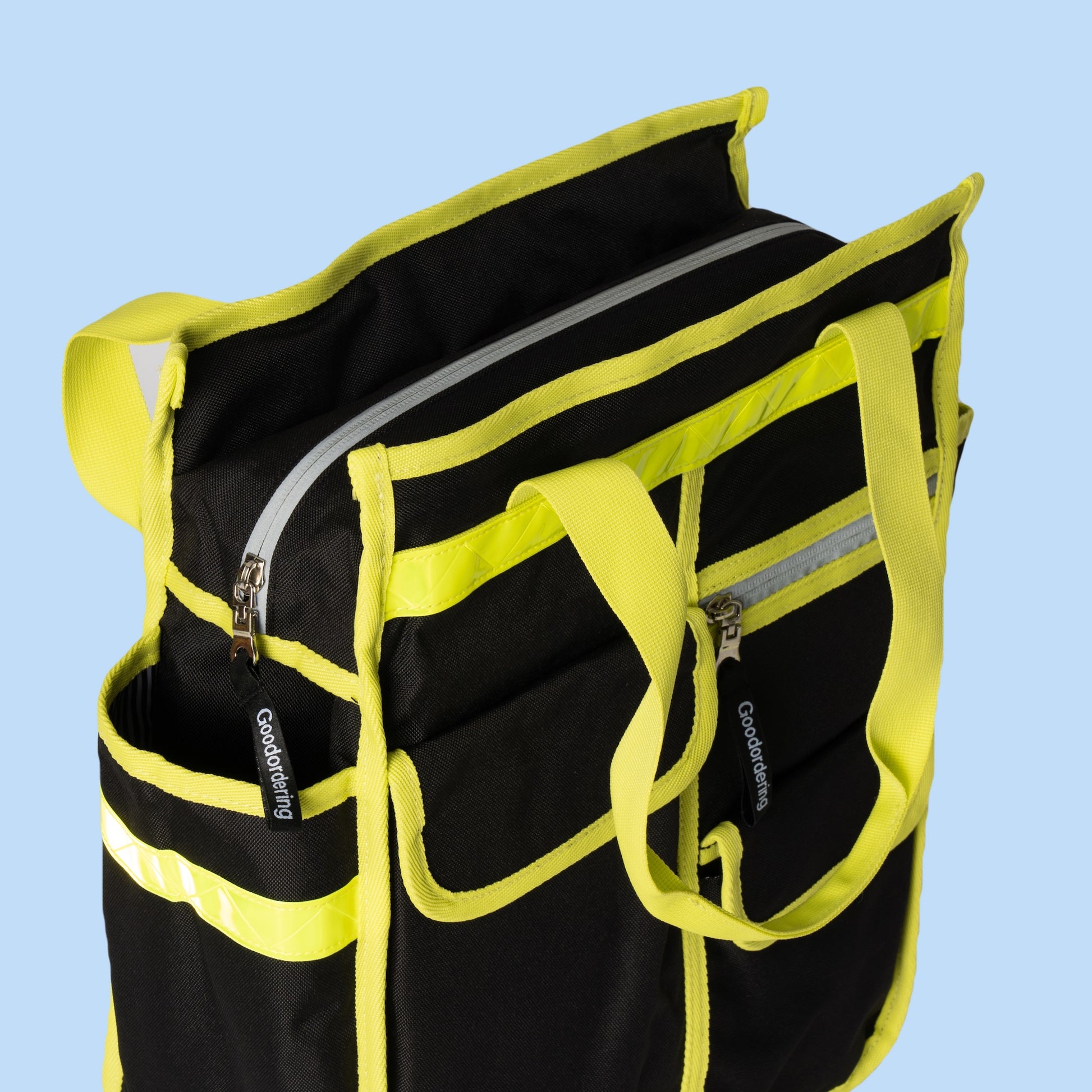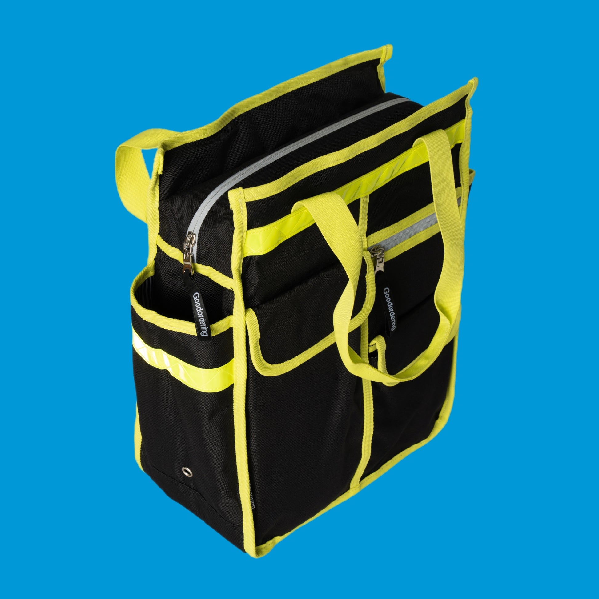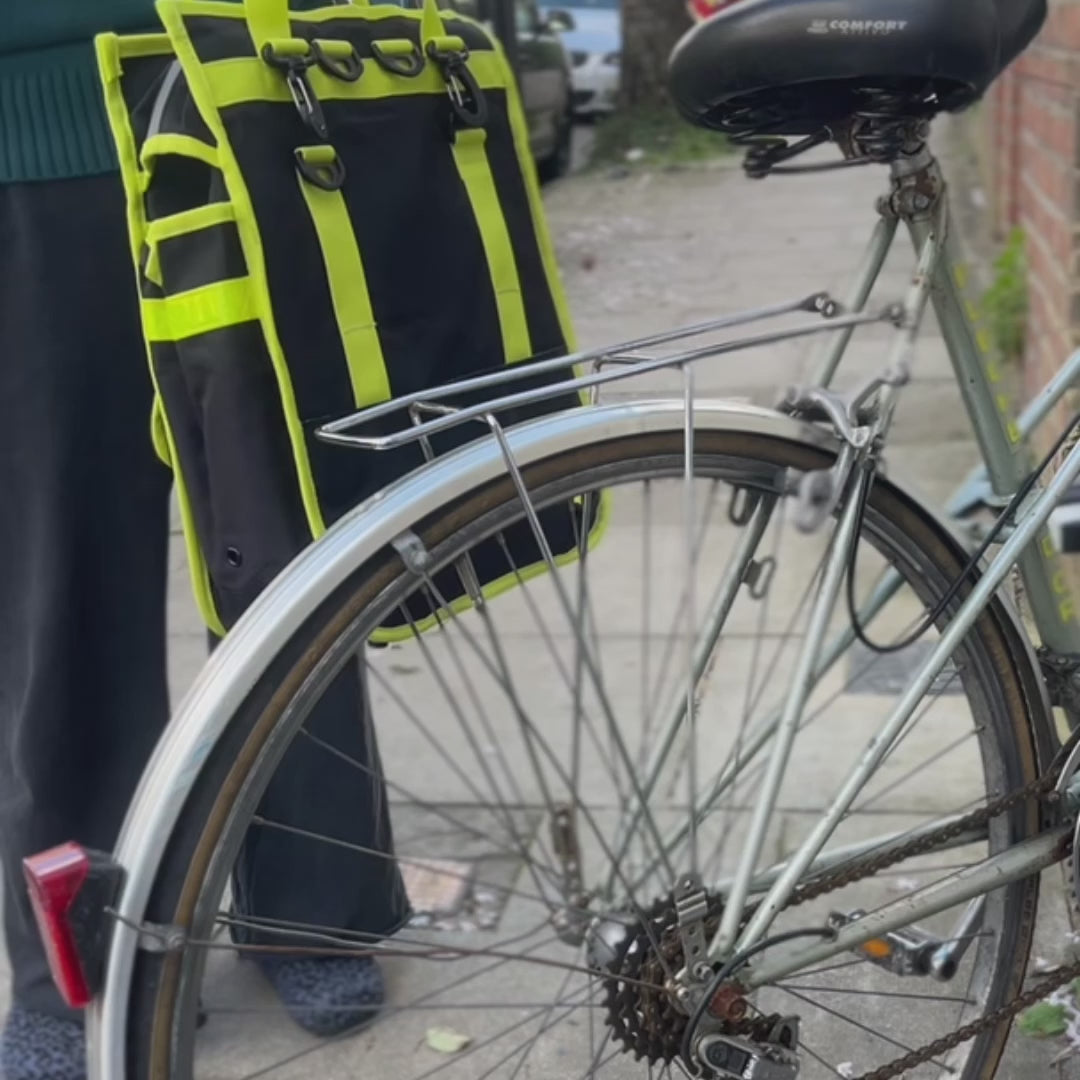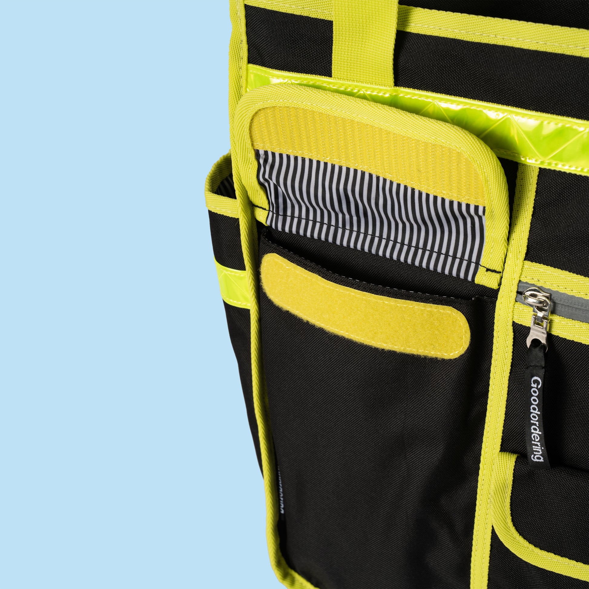 Bright yellow neon strong webbing straps that helps you to stand out at night when riding your bike. You can also machine wash this bag if it gets dirty.