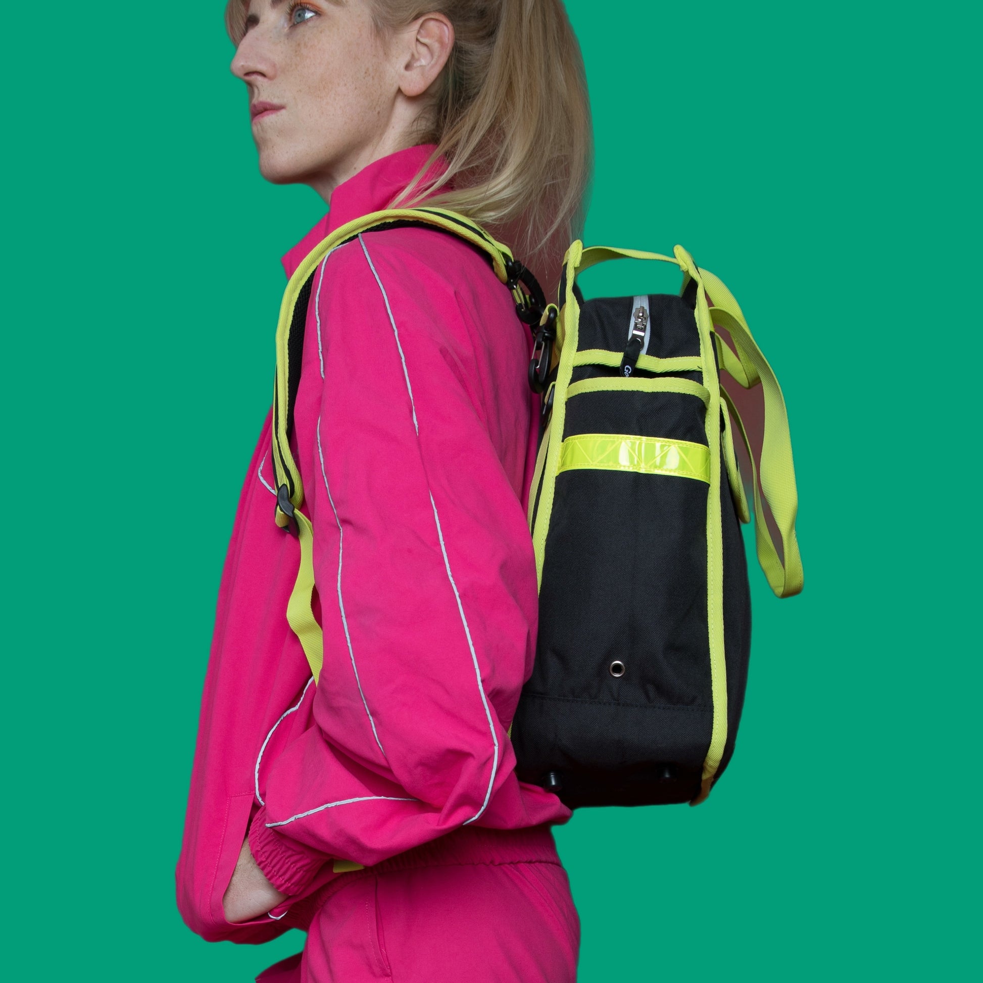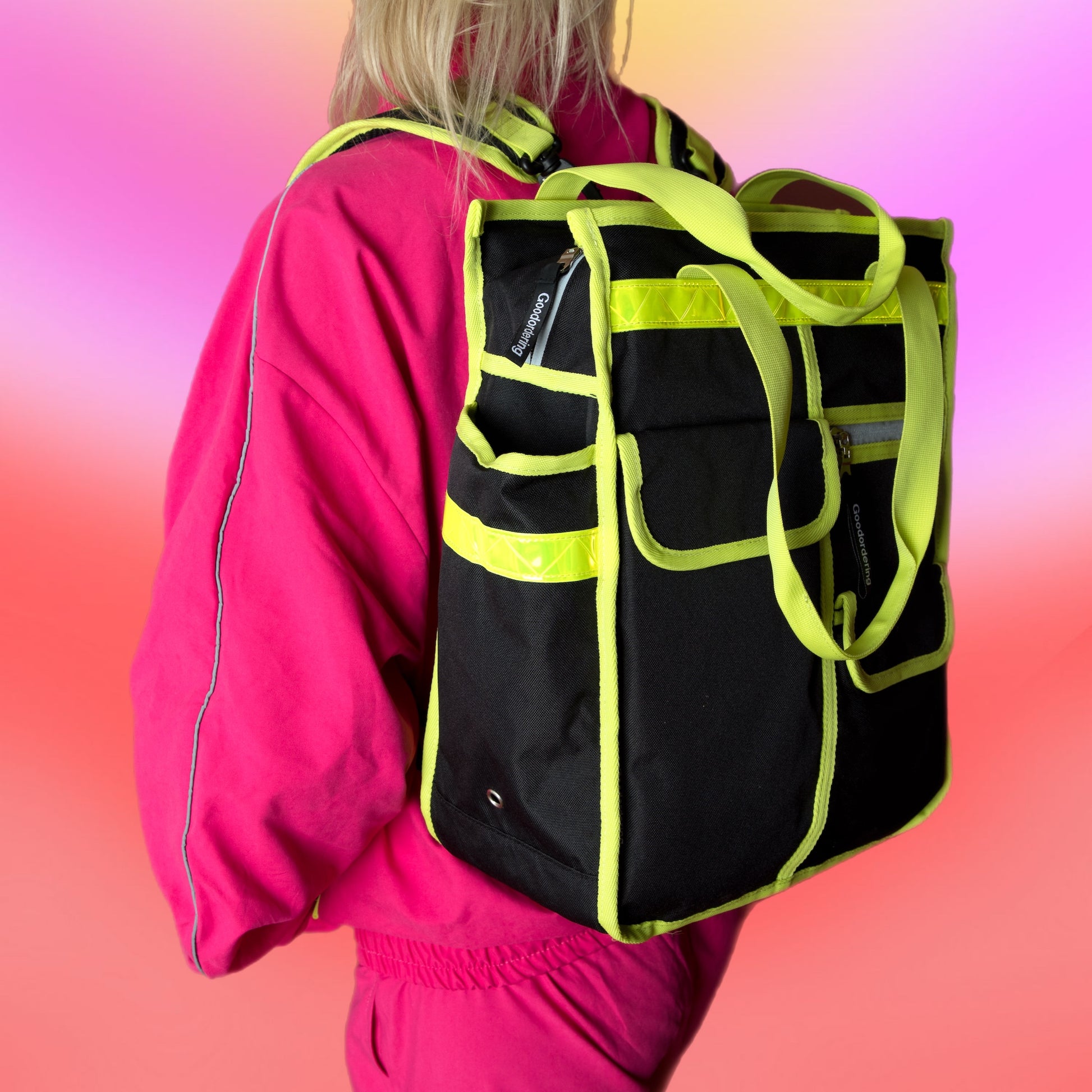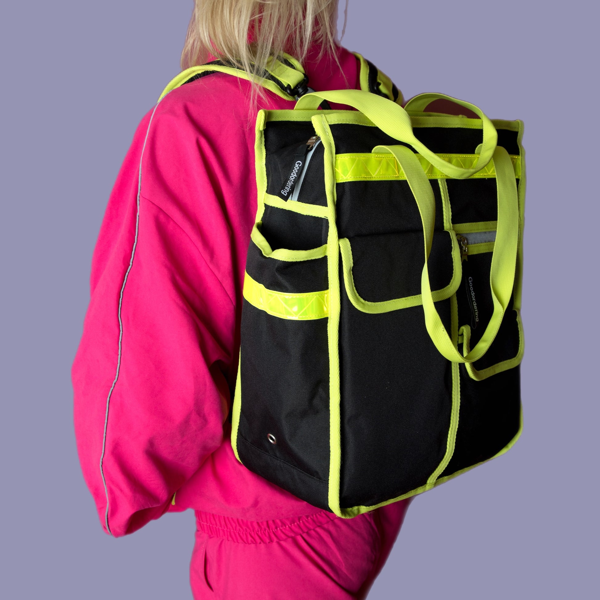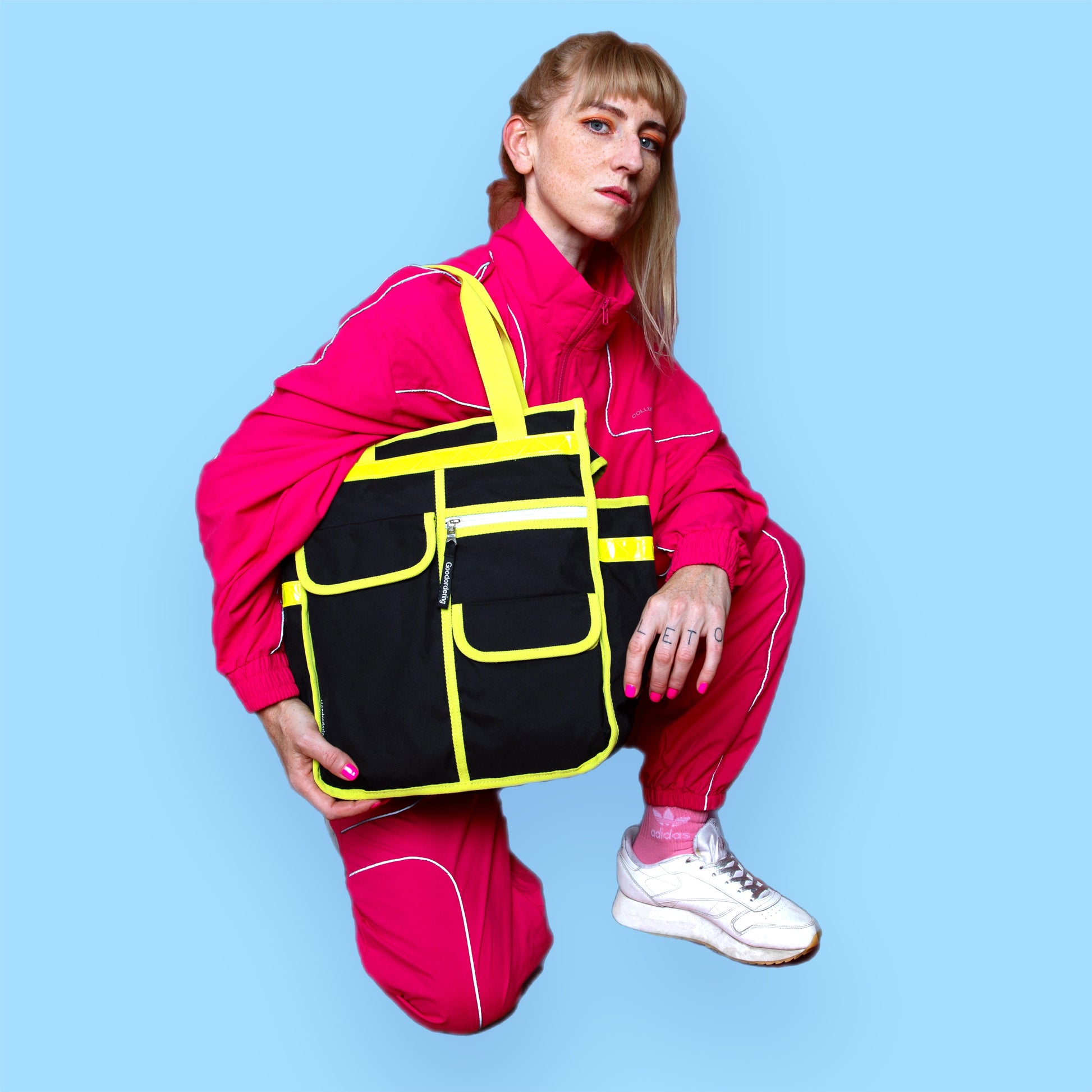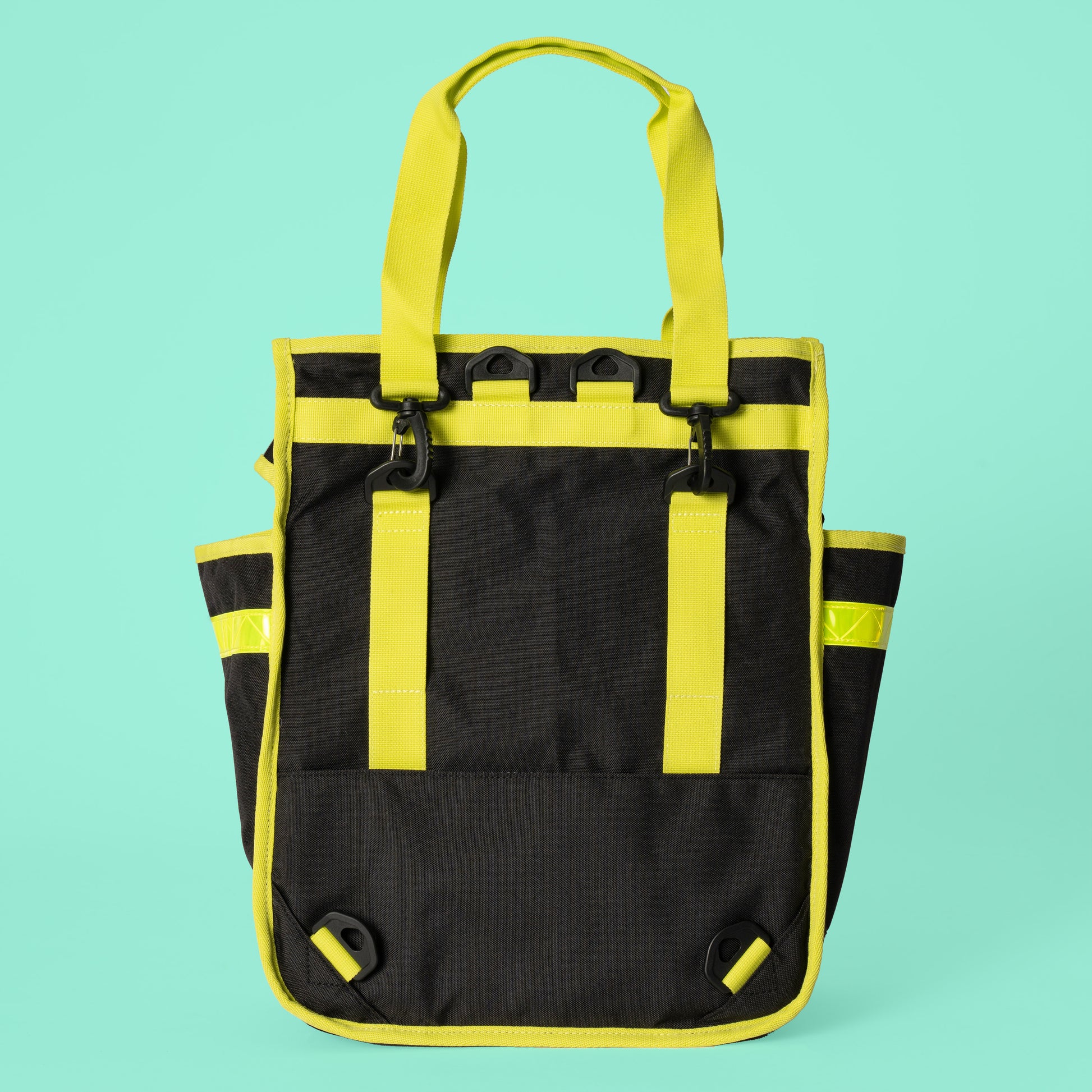 Bright yellow neon strong webbing straps that helps you to stand out at night when riding your bike. You can also machine wash this bag if it gets dirty.